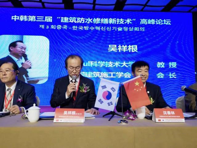 本次會(huì)議以“建筑防水修繕新技術(shù)”為主題,會(huì)議匯集中、韓兩國防水大咖齊聚一堂,韓國首爾科技大學(xué)吳祥根教授一行28位韓國防水專家蒞臨會(huì)議交流。中國建材蘇州非礦院防水材料設(shè)計(jì)研究所所長,湖北工業(yè)工業(yè)大學(xué)碩士生導(dǎo)師,享受國務(wù)院特殊津貼著名防水專家沈春林教授、韓國首爾科技大學(xué)防水技術(shù)研究中心吳祥根教授及國家相關(guān)部門領(lǐng)導(dǎo)先后發(fā)表重要講話,通過對(duì)當(dāng)前我國建筑防水修繕行業(yè)的分析,指出此次會(huì)議召開的重要性和必要性,并希望通過此次會(huì)議的召開,充分調(diào)動(dòng)防水人的積極性,重新樹立對(duì)防水行業(yè)未來市場的信心并致力于將防水修繕市場做的更好。