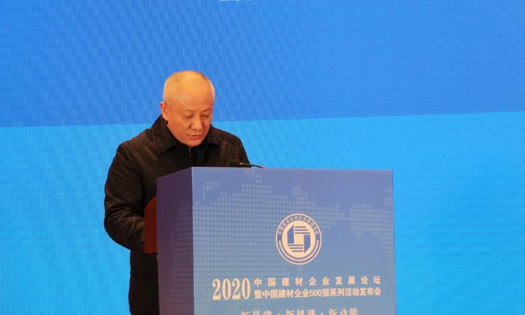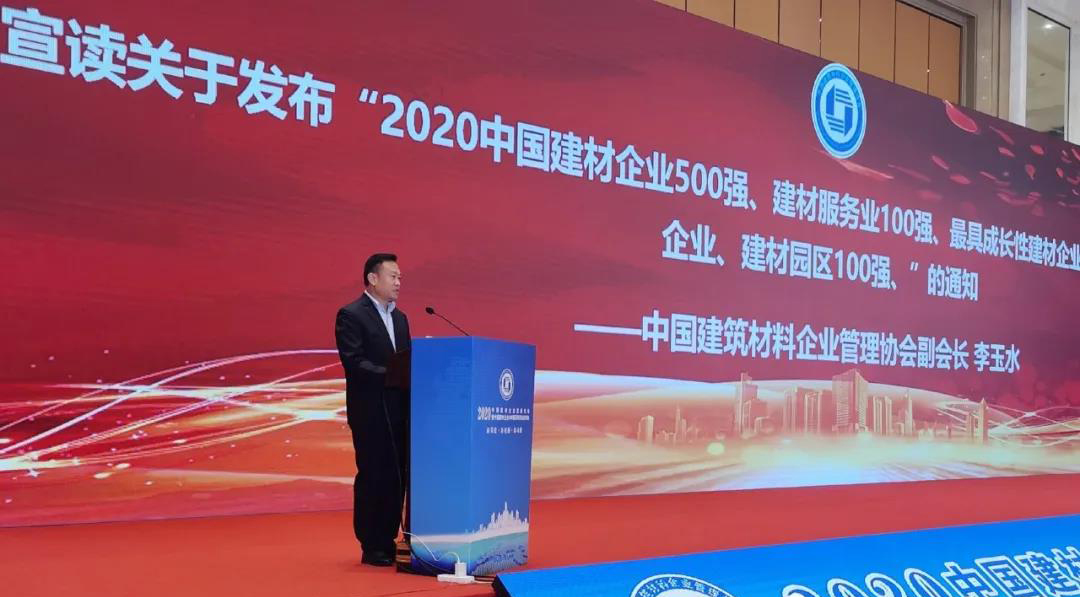 中國建筑材料企業(yè)管理協(xié)會(huì)副會(huì)長李玉水宣讀關(guān)于發(fā)布2020中國建材企業(yè)500強(qiáng)等獎(jiǎng)項(xiàng)的通知