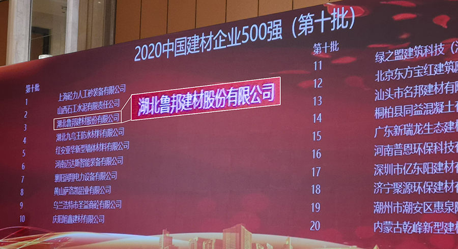 湖北魯邦建材股份有限公司榮獲“中國建材企業(yè)500強(qiáng)”稱號(hào)。