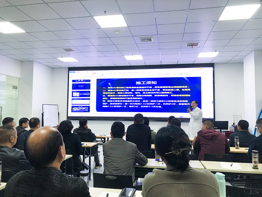 交流會上,公司防水修繕事業(yè)部總經理高艷生,研發(fā)總監(jiān)劉軼麟分別就防水修繕技術、產品知識及疑難問題進行了專業(yè)、詳實的分享,同時,參會的各位精英也就各自區(qū)域的業(yè)內問題進行了熱烈而又富有成效的討論。