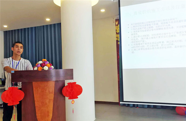 技術部劉軼麟先生在會上對公司原有產(chǎn)品的改良做了詳細的講解說明,同時發(fā)布了新的產(chǎn)品,還對各種產(chǎn)品施工的細節(jié)與大家做了交流探討。